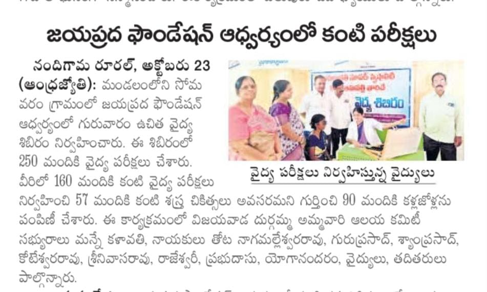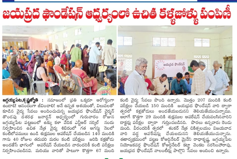 October 27, 2025జయప్రద ఫౌండేషన్ ఆధ్వర్యంలో ఉచిత కంటి మరియు వైద్య శిబిరాలు
