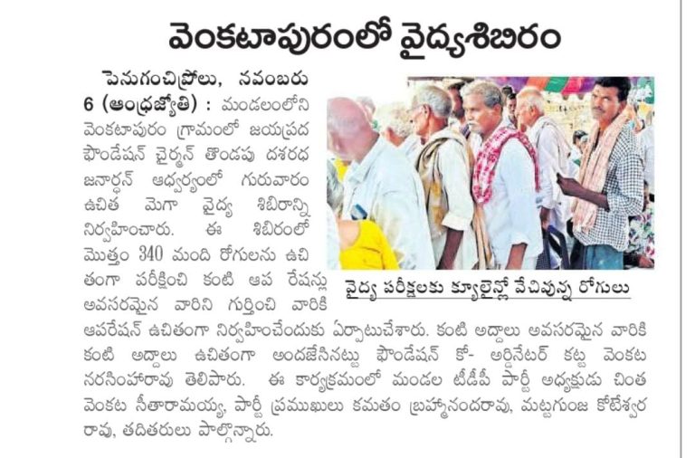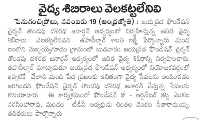 జయపà±à°°à°¦ ఫౌండేషనౠఆధà±à°µà°°à±à°¯à°‚లో ఉచిత à°•à°‚à°Ÿà°¿ మరియౠవైదà±à°¯ శిబిరాలà±