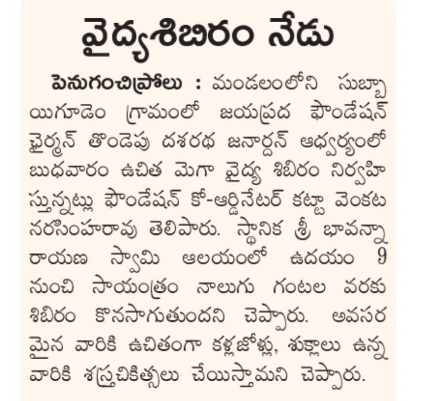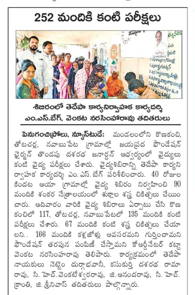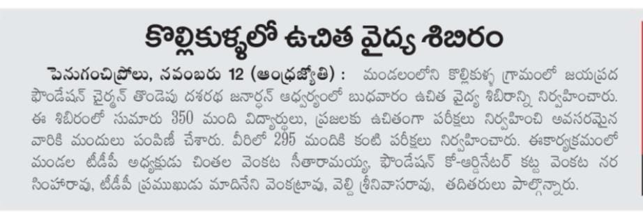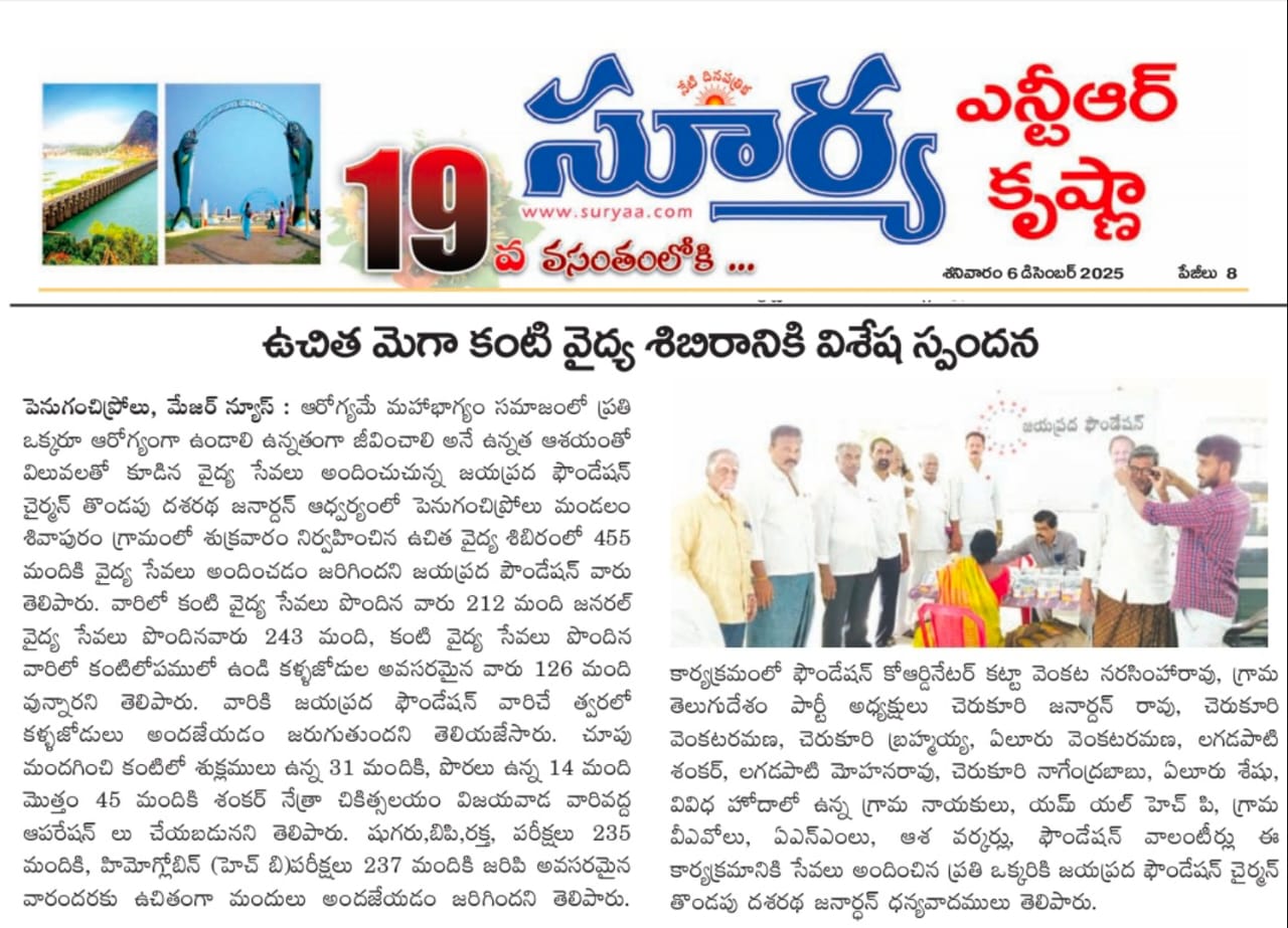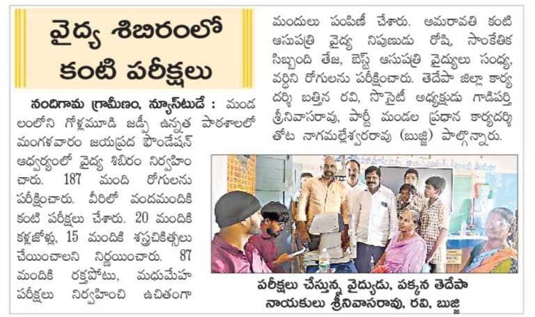 • జయపà±à°°à°¦ ఫౌండేషనౠఆధà±à°µà°°à±à°¯à°‚లో ఉచిత à°•à°‚à°Ÿà°¿ మరియౠవైదà±à°¯ శిబిరాలà±
