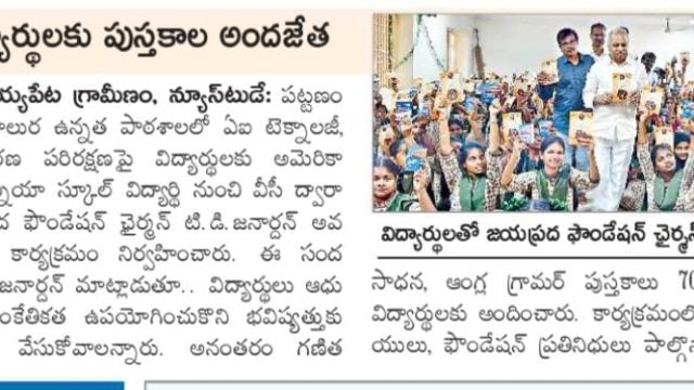 • జయప్రద ఫౌండేషన్ ఆధ్వర్యంలో పుస్తకాల పంపిణి