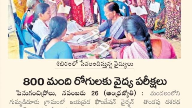 జయప్రద ఫౌండేషన్ ఆధ్వర్యంలో ఉచిత వైద్య , కంటి పరీక్షలు, శస్త్ర చికిత్సలు, కళ్ళ జోళ్ల పంపిణి